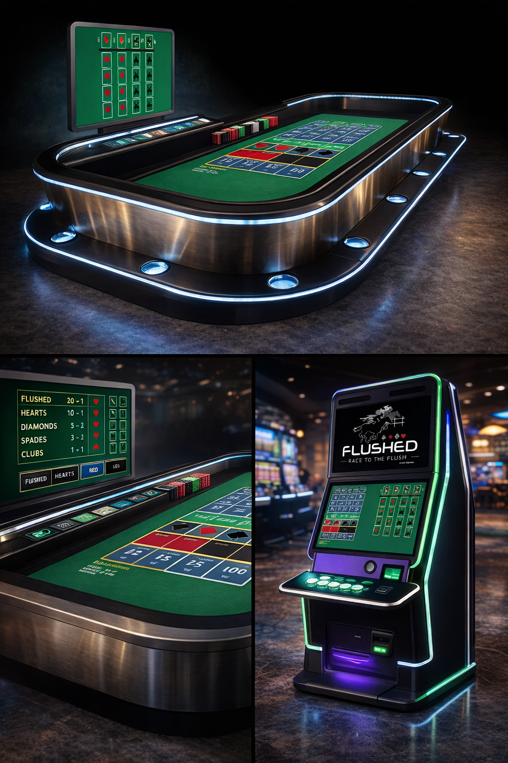 Flushed supports multiple concurrent wager types—round length, suit, color, ranges, bonus outcomes, and progressive—making it well-suited for ETG terminals, stadium formats, and hybrid digital deployments.